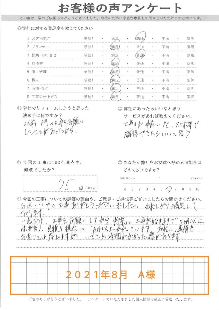 一点だけ、工事をお願いしてから実際に工事が始まるまで、3か月以上間があり、見積もり提示に1か月以上かかっています。