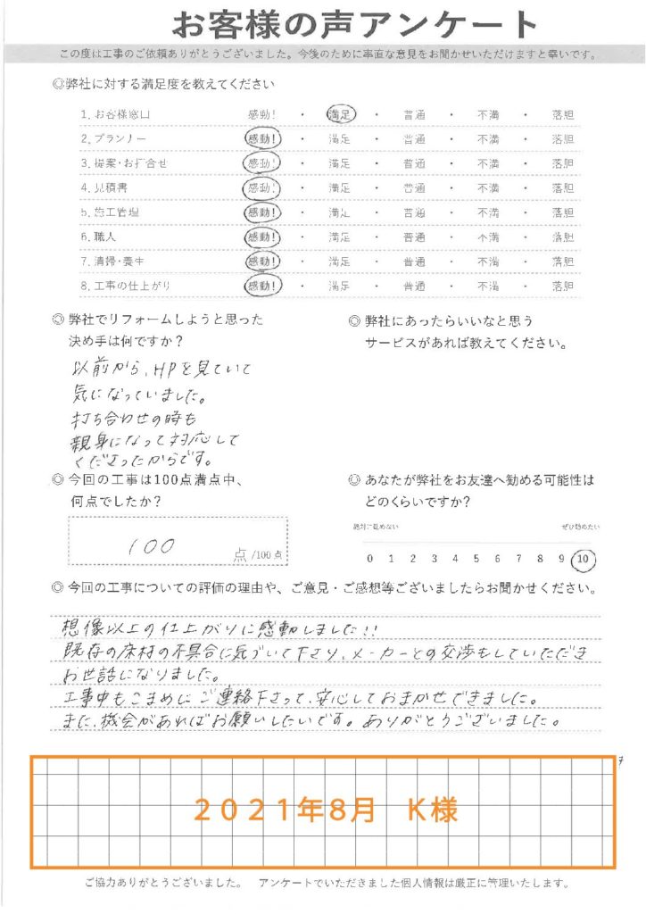 既存の床材の不具合に気づいて下さり、メーカーとの交渉もしていただきお世話になりました。