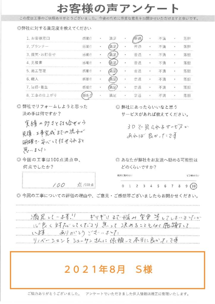 実績の多さと打ち合わせから見積、工事完成までの流れが明確で安心して任せられると思いました。