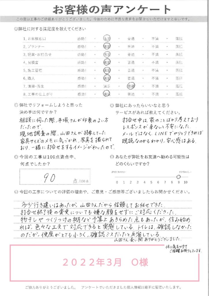 多少の行き違いはあったが、山田さんだから信頼してお任せできた。