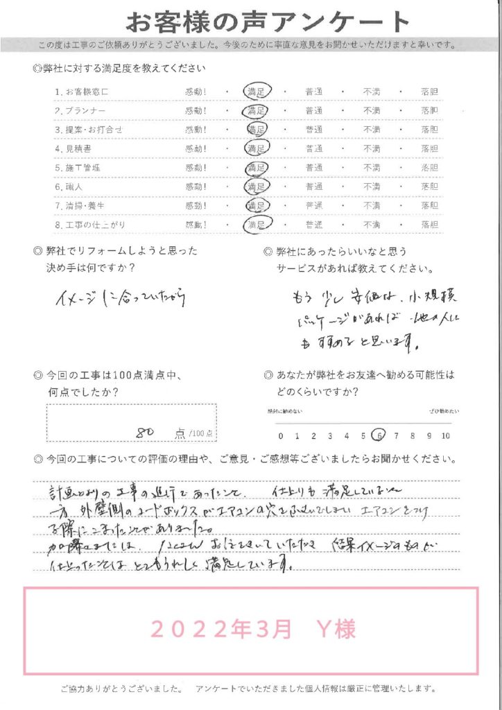 計画通りの工事の進行であったこと、仕上がりも満足している。