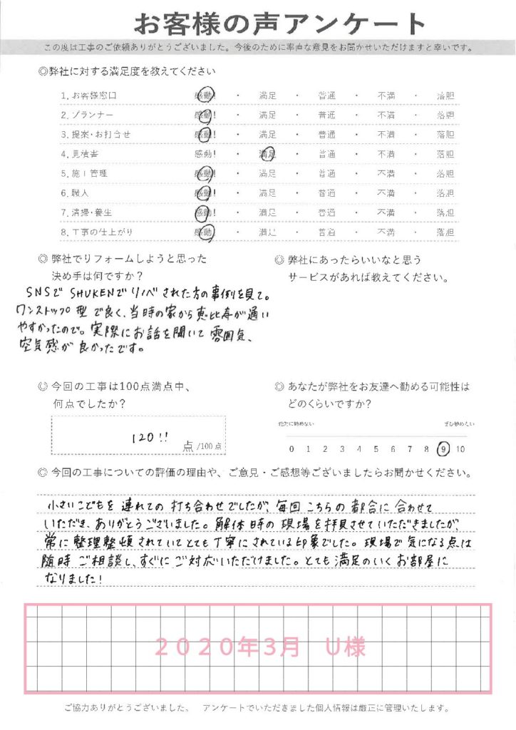 2020年3月U様