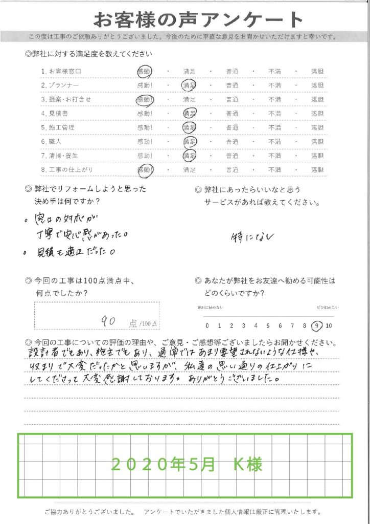 設計者でもあり、施主でもあり、通常ではあまり要望されないような仕様や、収まりで大変だったかと思いますが、私達の思い通りの仕上がりにして下さって大変感謝しております。