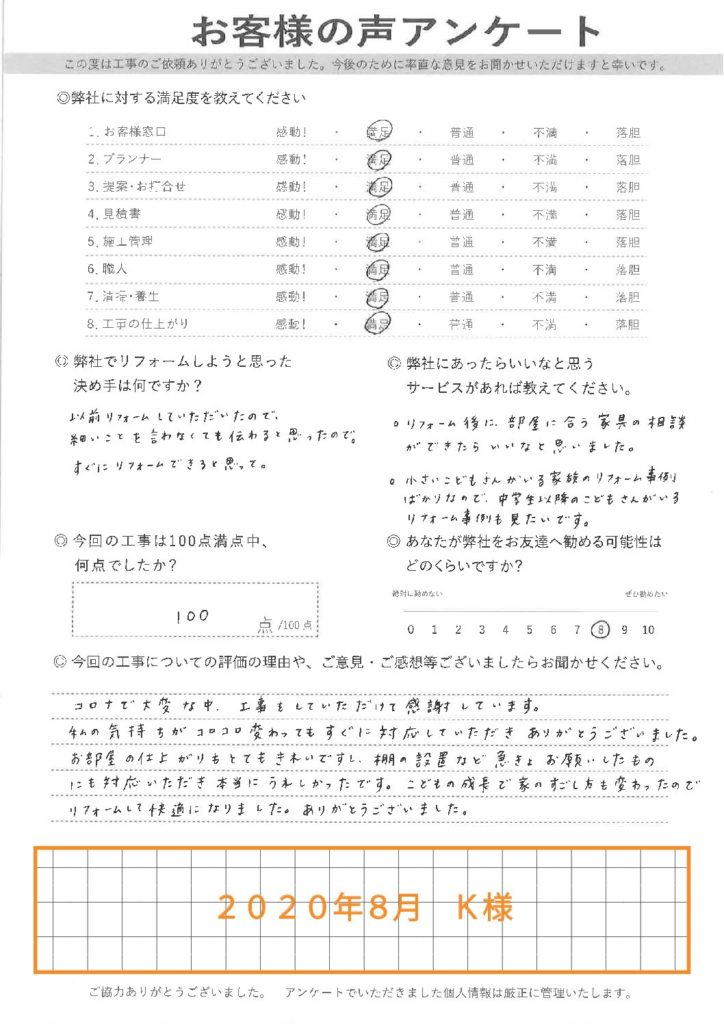 子供の成長で家の過ごし方も変わったので、リフォームして快適になりました。