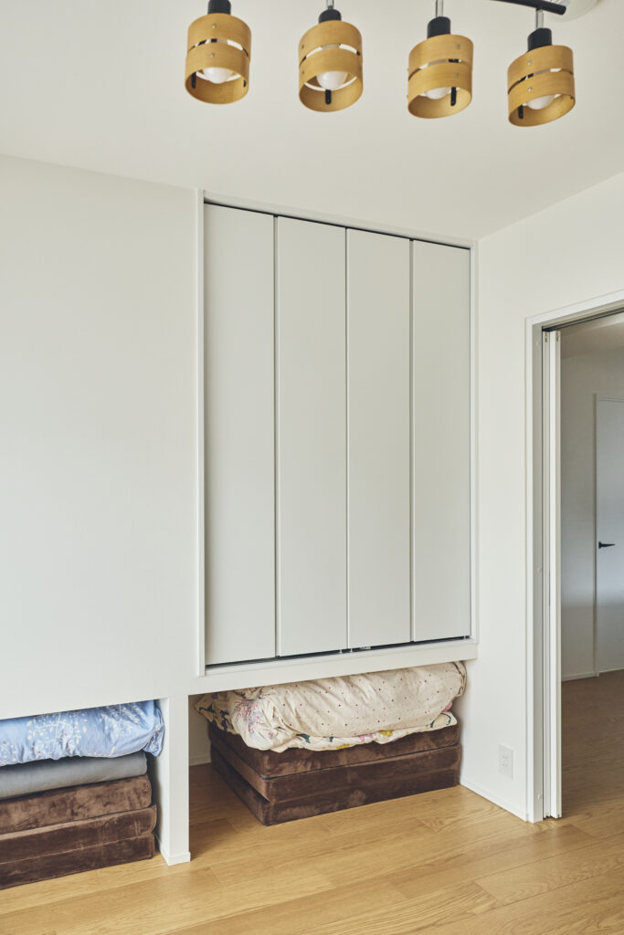デスクと就寝時に必要なスペースを立体的に使うことで、