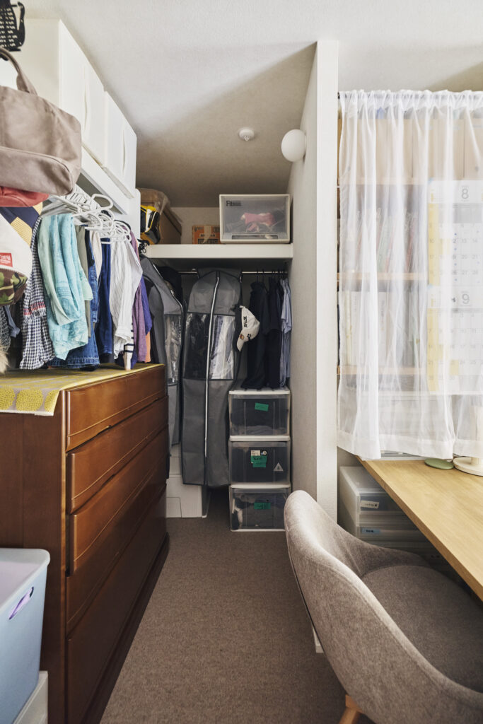デスクに座ると、和室を通して庭の緑を楽しめる開放感があります。