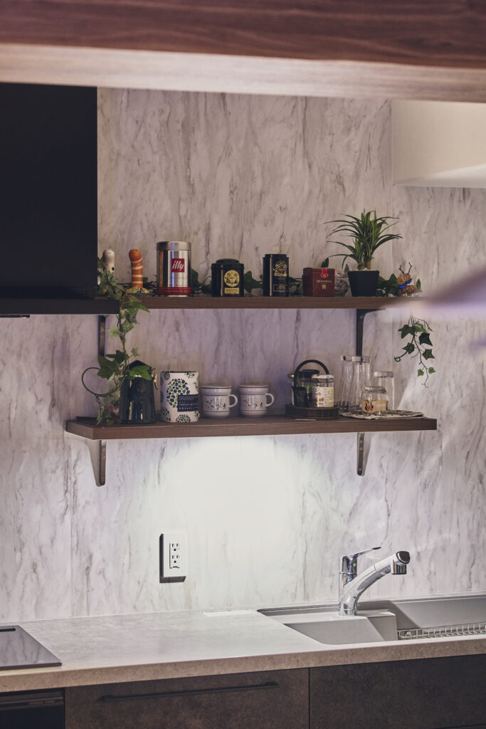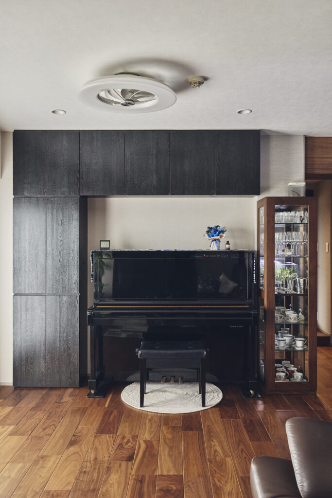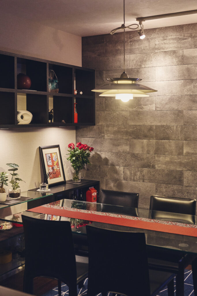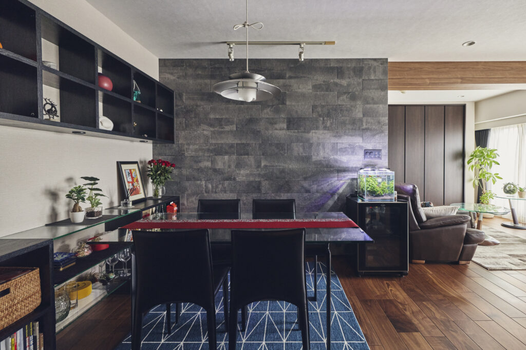 全体的に落ち着いた色合いで統一しシックな空間に。