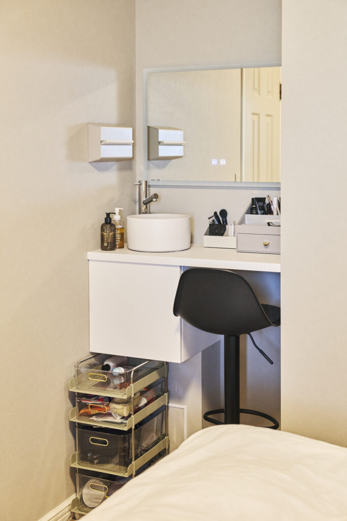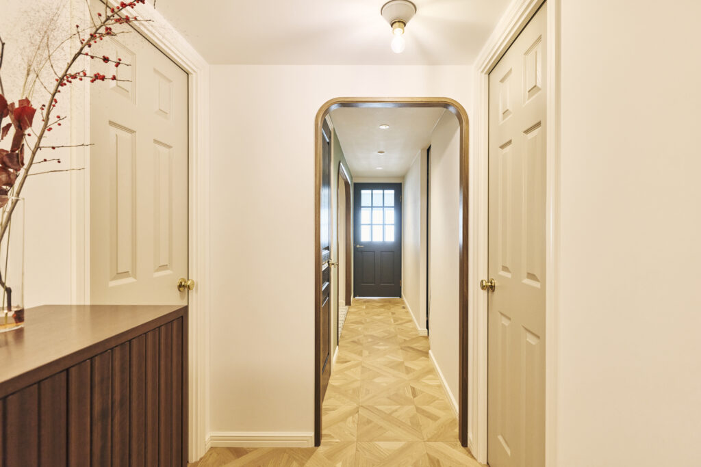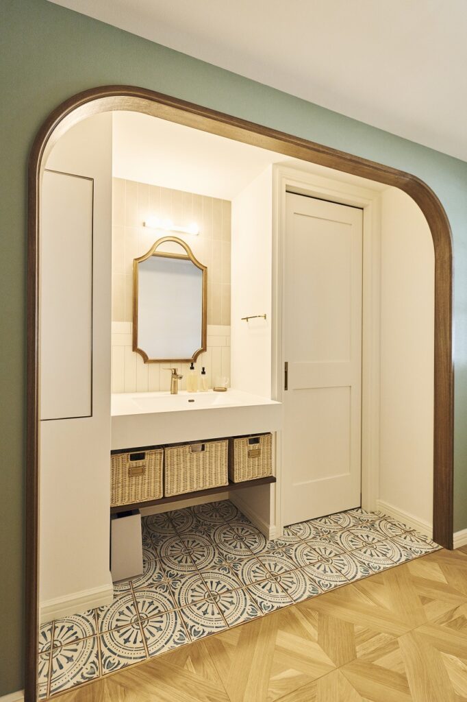 廊下に洗面台を設置し、華やかな空間としつつ