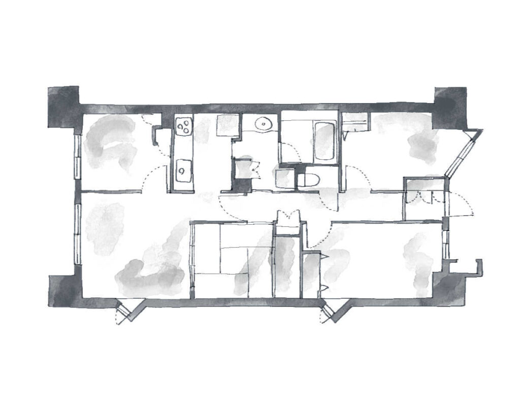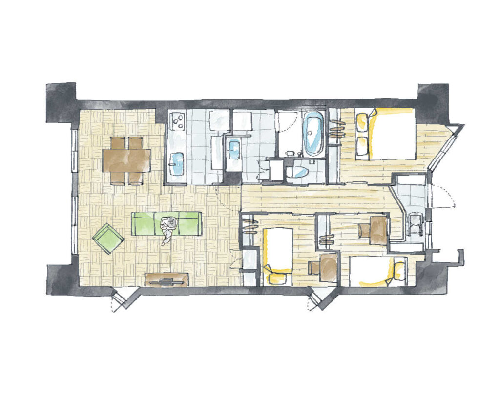 壁をなくして広々としたワンルームに変更。