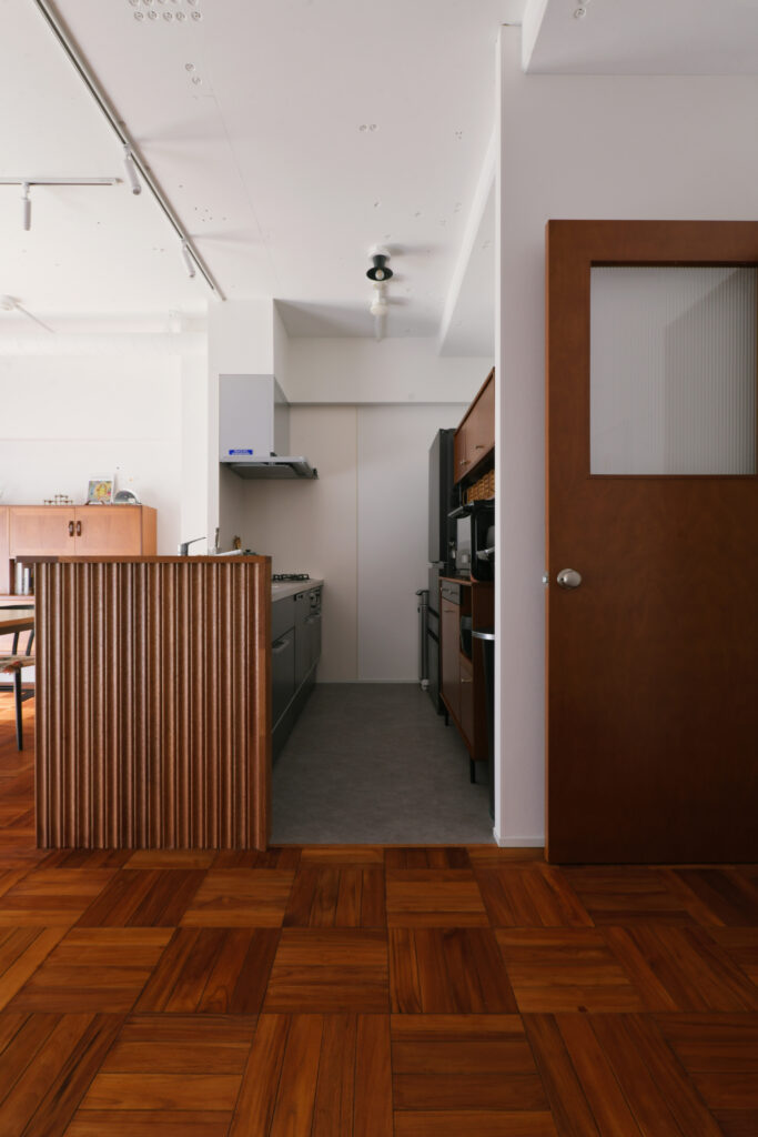キッチンカウンター周りのリブパネルなど