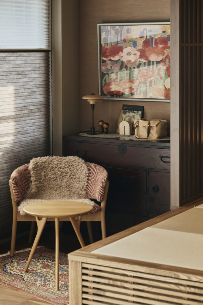 全体のテイストは和モダンで、落ち着いた雰囲気がありつつも、所々にアクセントを加え落ち着きすぎず飽きさせない工夫がされています。