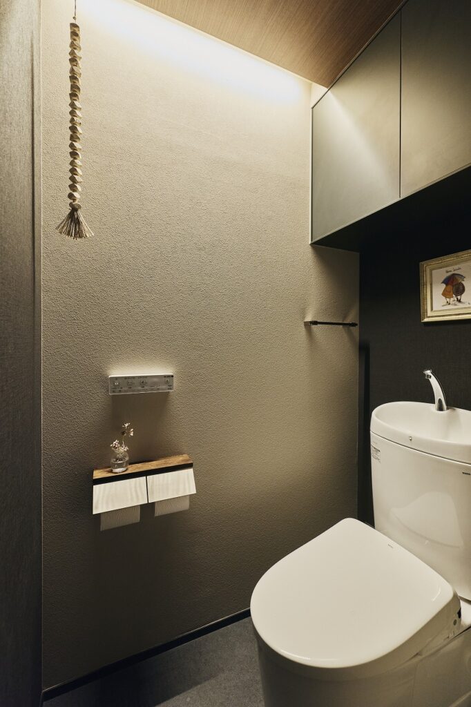 トイレは黒やグレーを基調とした落ち着いた雰囲気で統一。