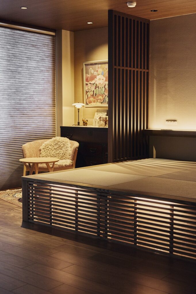 旅館のような非日常を演出したいと、小上がりを下から照らす照明を入れたのもこだわりの一つ。「リビングから見える部分なので意匠にこだわりたいと思って」と奥さま。非日常感を自宅で味わえるのは憧れちゃいます。