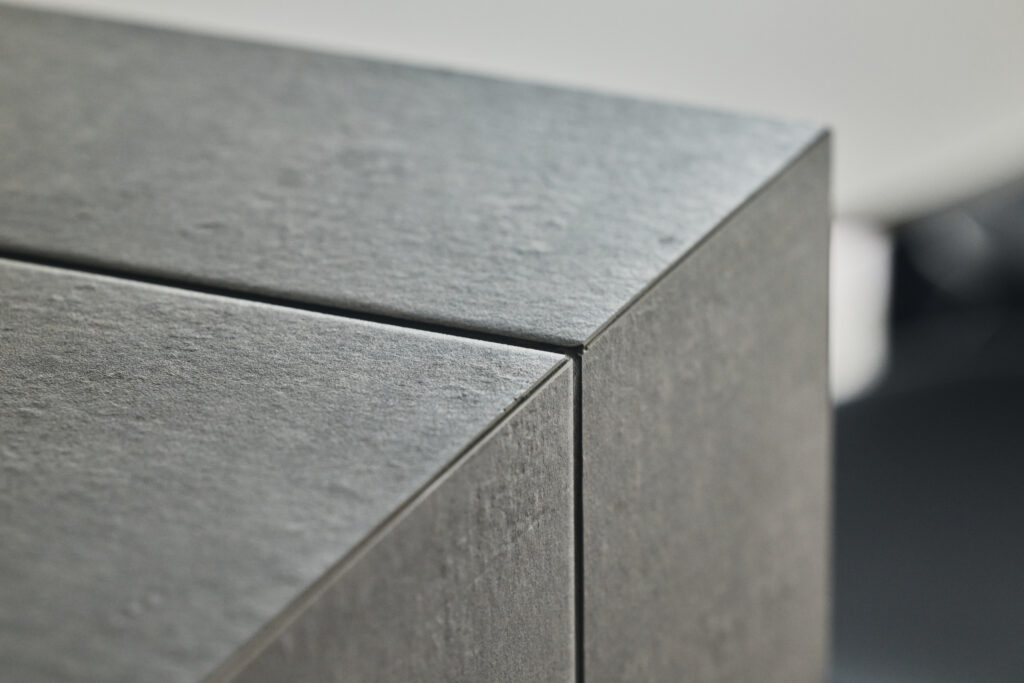 目地の見た目を考慮し、タイルの端を45度で削る調整も。これをすることで、角の目地の幅が狭くなり目立たなくなります。こういった細かなこだわりの積み重ねが質の高い空間を作っているのですね。