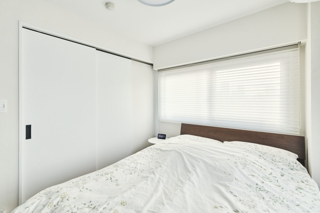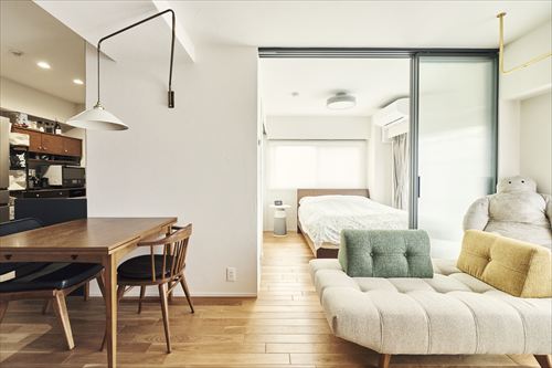 - ガラス間仕切りで寝室の独立性を保ちつつ明るさと開放感をアップ