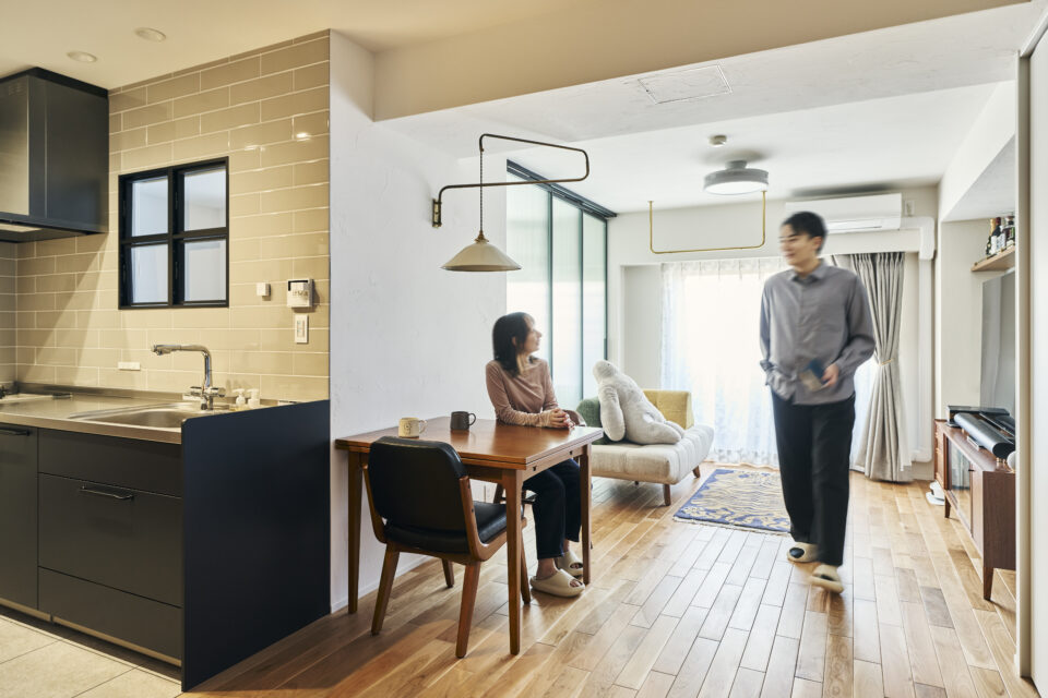この日うかがったのは、東京都港区の高台にある築約50年のヴィンテージマンション。ご結婚にあたってこちらを購入しリノベーションされたOさまご夫妻のお住まいです。ご主人によると、リノベに至ったのはご両親の影響が大きかったのだそう。「両親が不動産物件を何軒かリノベした経験があり、私もその自由度の高さを実感していました。だからいつか自宅を持つなら自分で住みやすいようにリノベしてみたいと思っていたんです」