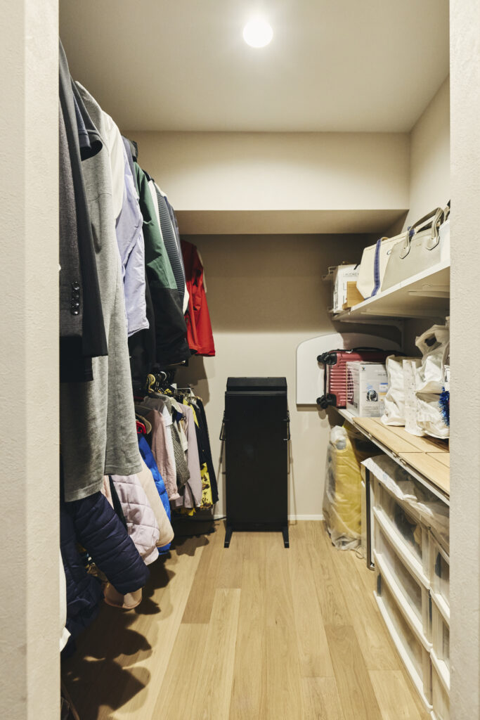 こちらは大容量のWIC。奥さまがリノベで叶えたかったポイントのひとつです。