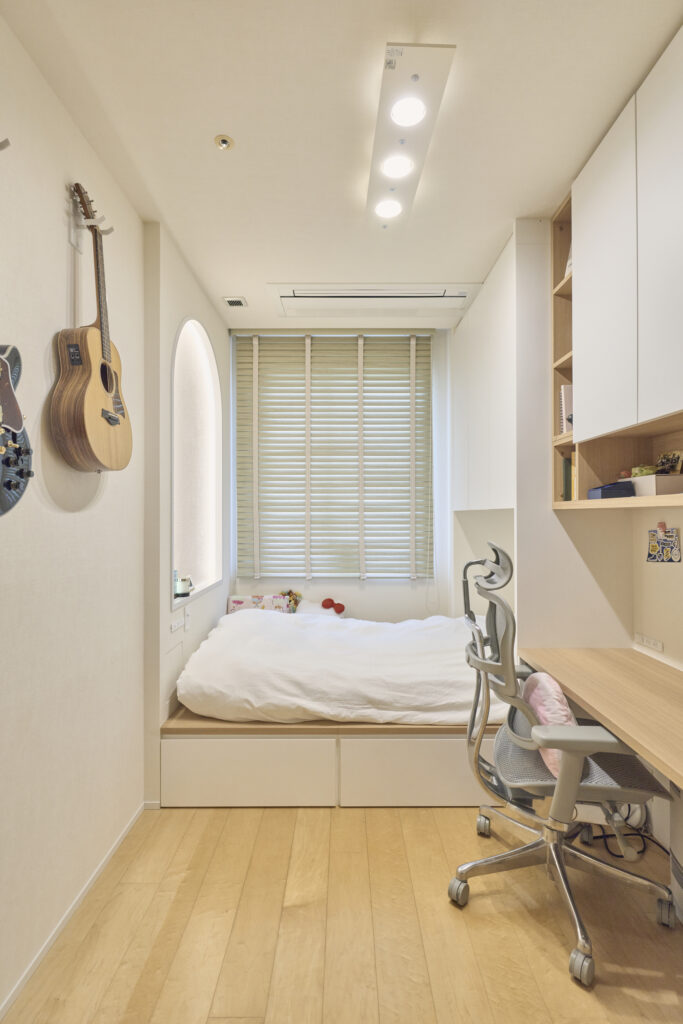 リビングと同じように力を注いだのが、現在中学2年生のお嬢さまの個室です。これまでは収納を兼ねた2 段ベッドが場所を取り、小さなデスクしか置けなかったのだそう。