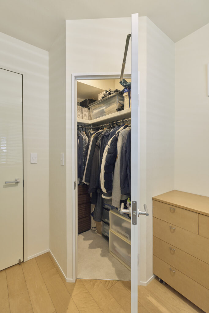 ご自宅でリモートワークをすることもあるというご主人は、リビングに隣接する洋室を書斎として整えることに。スペースに合うデスクとベッドをネットショップで新調し、さらにお部屋の一角にウォークインクローゼットを設けました。